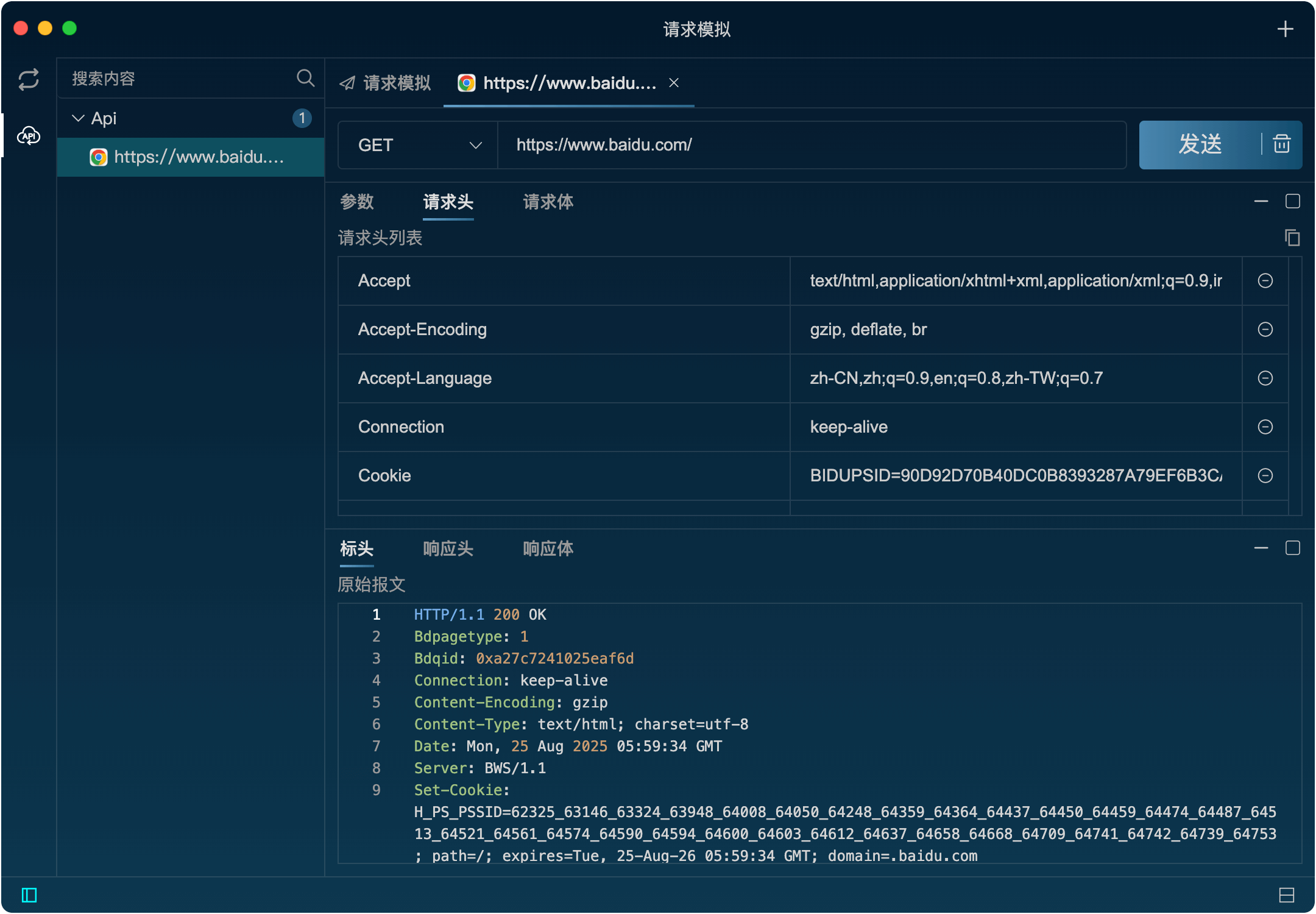 构造任意的HTTP/HTTPS请求,便于测试接口。